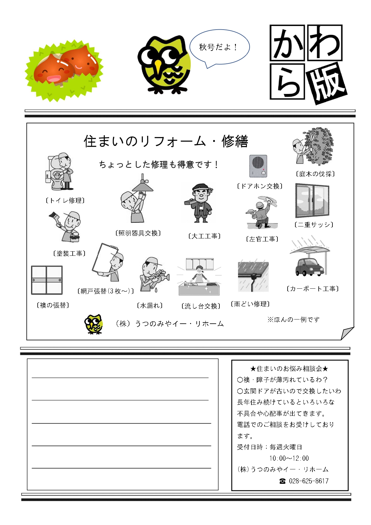 宇都宮で生まれ、宇都宮で育った弊社がお客様に、「いいリホーム」をご提供していくことを使命として「うつのみやイ-・リホーム」と命名しました。